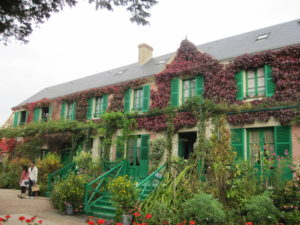 Après un parcours par de petits villages pittoresques parfois peu propices à la circulation d’un car, à 10 heures nous sommes à Giverny accueillis par une conférencière charmante et très intéressante. Nous commençons par le jardin d’eau rendu célèbre par les tableaux de nymphéas. Lors de sa création, les gens du village s’inquiétèrent des risques au demeurant illusoires liés à l’introduction de plantes à l’époque inhabituelles. Puis nous visitons les très beaux jardins plus classiques qui se trouvent devant la maison elle même.